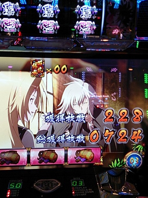 二人とも朝イチからBT当選し、ある程度の出玉が出来、謎当たりを引くなど、